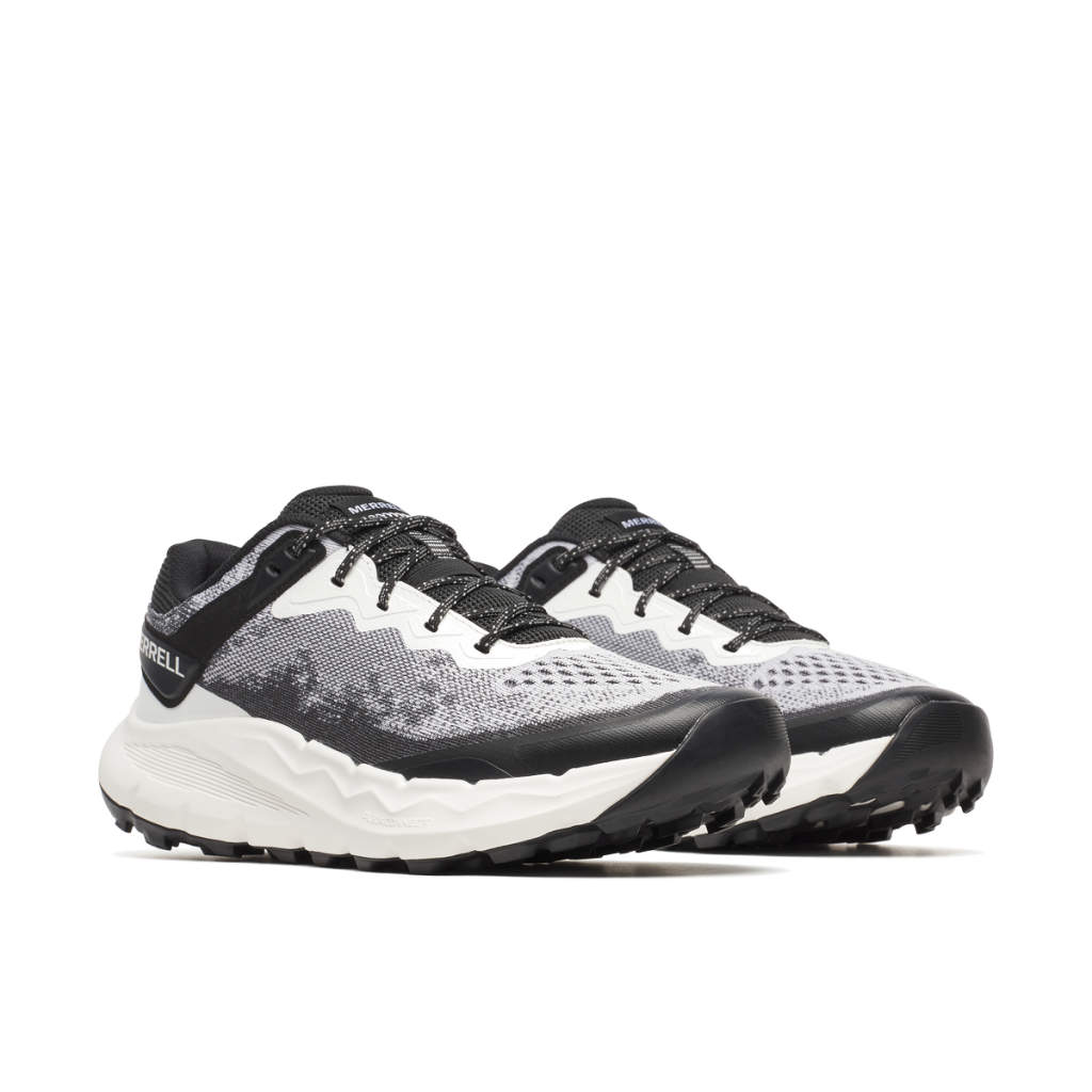 O topo apresenta um tecido Matryx® entrelaçado de camada única, reforçado com Kevlar, que maximiza a respirabilidade e durabilidade, reduzindo drasticamente o estiramento. Internamente, o forro absorve a humidade, enquanto a entressola apresenta a nossa melhor espuma FloatPro™ para conforto em longas distâncias. Por baixo, utiliza uma sola Vibram® MegaGrip® com ressaltos de 5 mm que oferecem tração máxima.